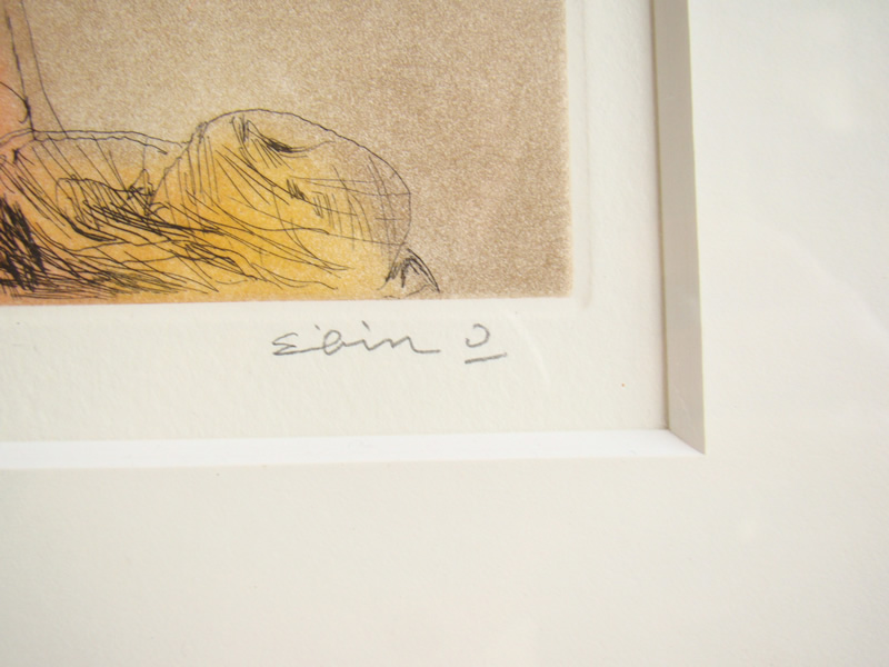 大津英敏さんはご自分の娘さんをモデルに描き続けていることで有名な方ですね。この作品もそのひとつと思います。帽子を手にする少女の姿を、エッチングの技法を用いて表現しています。