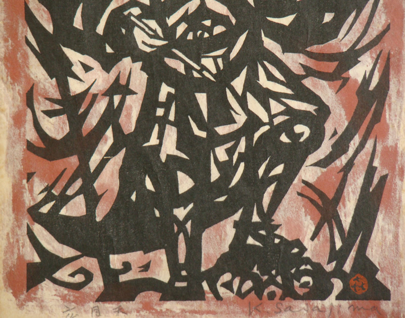 元来蒲柳の質で、一時期は木版画制作もままならない時もあったようですが、板絵を拓摺する事を考案して作品を作ったということです。これらは晩年の作品と思いますが、華奢なものが多かった若いときの作品に比較して、無駄のない余計なものをそぎ落としていった老境の自由闊達な空気が感じられます。