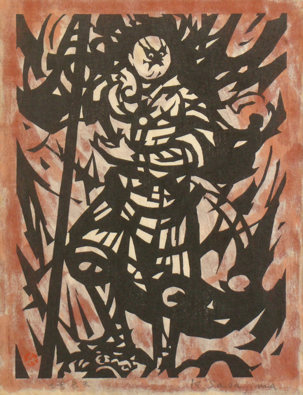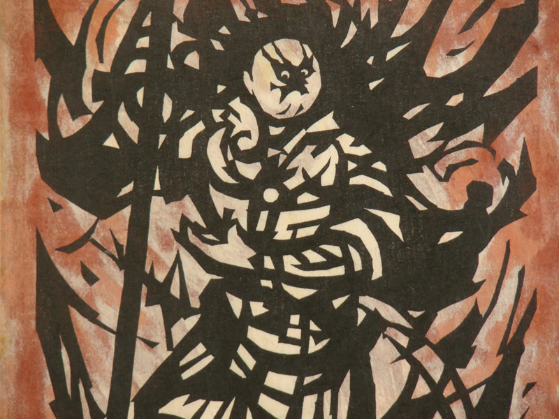 シンプルで力強い線で構成された四天王、その内の増長天と広目天が二体一組に額装されています。邪悪なものや怠惰、誘惑に負けやすい弱い心を払い、煩悩を焼き尽くす炎のような視線は迫力がありますね。氏の作品の魅力、面目躍如たる一品です。