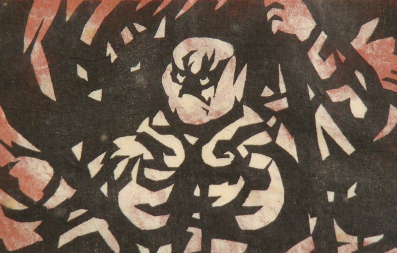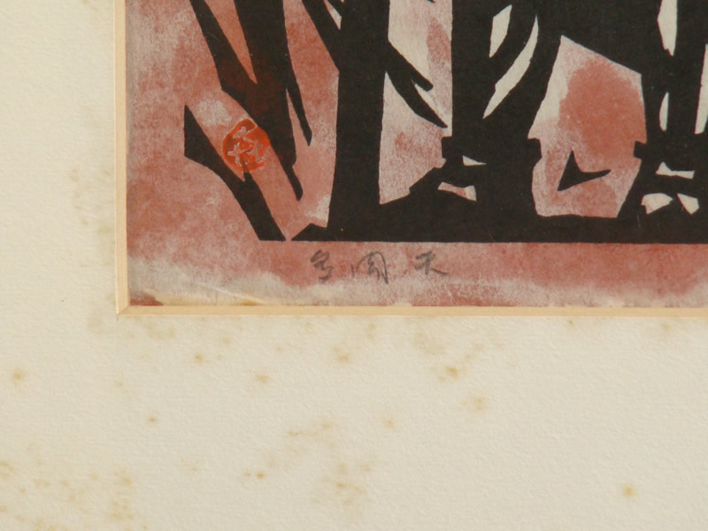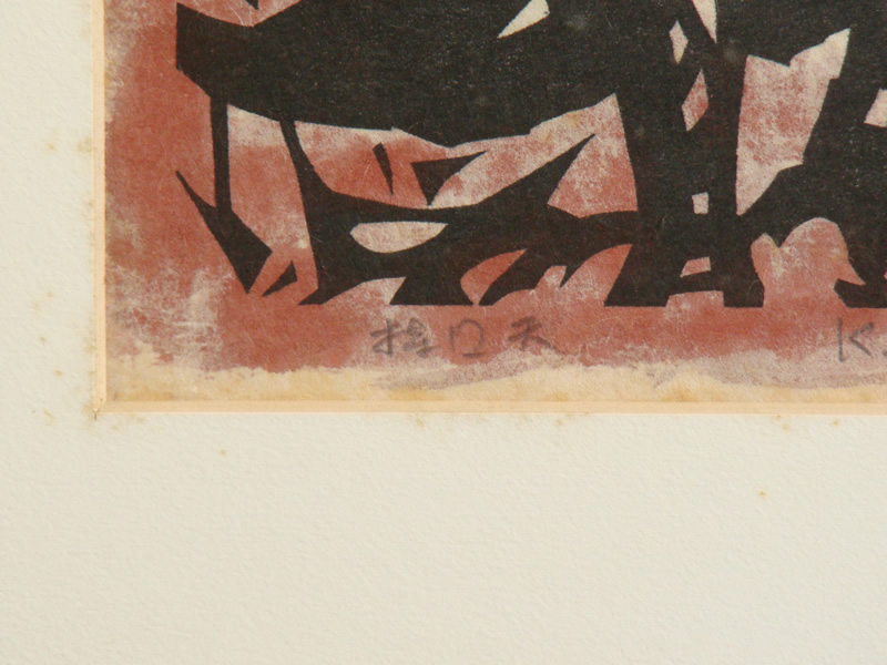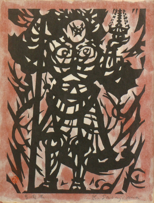 こちらも笹島喜平さんの板画です。先にご紹介したものの連作で、こちらは持国天と多聞天を二体一組にして額装しています。