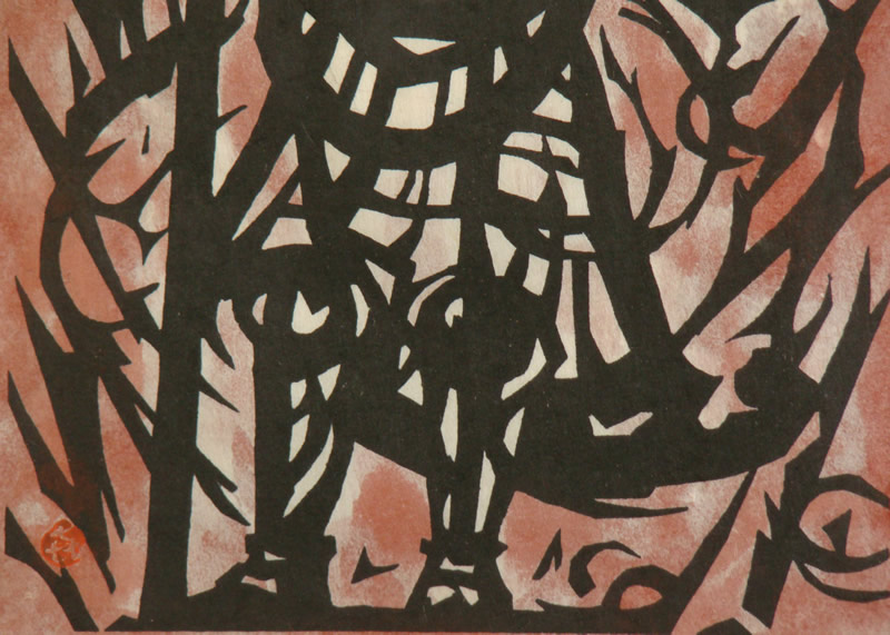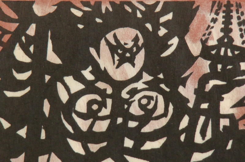 どうしても地味な印章を受けてしまう笹島さんですが、これは師匠・棟方志功と袂を分かったからでしょうか。日本板画院を結成した志功でしたが日展に出品したりと、自分勝手な行為をした師匠から見捨てられたようなかたちの人たちを慮り、激烈に抗議したことがその原因らしいのですが、気骨のある笹島さんらしいエピソードかもしれません。版画界の勢力に黙殺されたかたちの笹島さんは、志功に比べてあまり陽の目を見ることがなかったかもしれません。でもその美しく気概に溢れた作品はもっともっと注目されていいものじゃないでしょうか。
