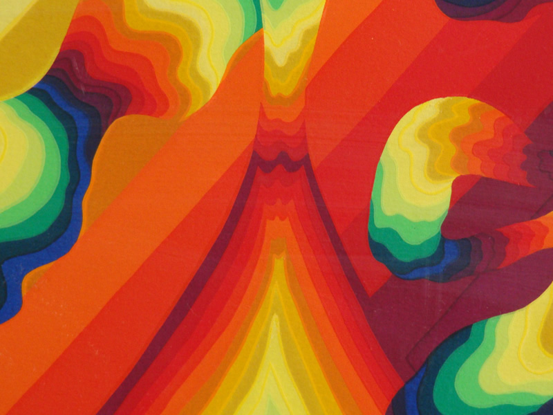 生命の根源の力を象徴するものでしょうか、火山が噴火していますね。力強く明快な色は力を与えてくれます。