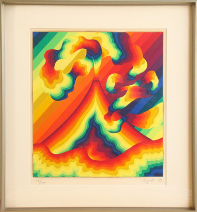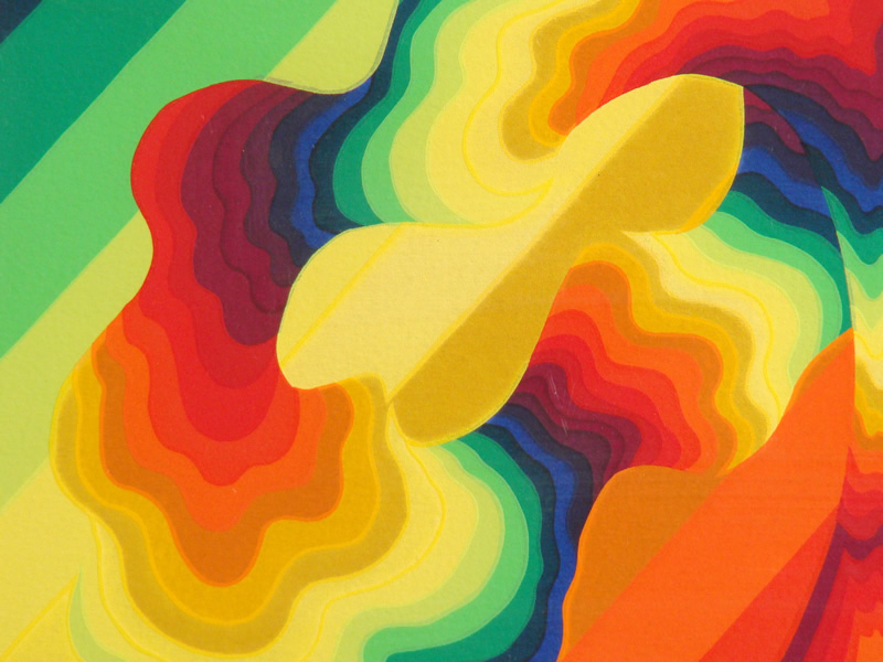 靉嘔と云えばこの独特の虹の色合いの作品で知られる方ですね。キャリアは古く、オノヨーコやナムジュンパイクなどがいたニューヨークの美術運動フルクサスなどに参加したり、瑛九が創設したデモクラート美術協会に参加したりと、ずっとアクティブに活動している作家です。