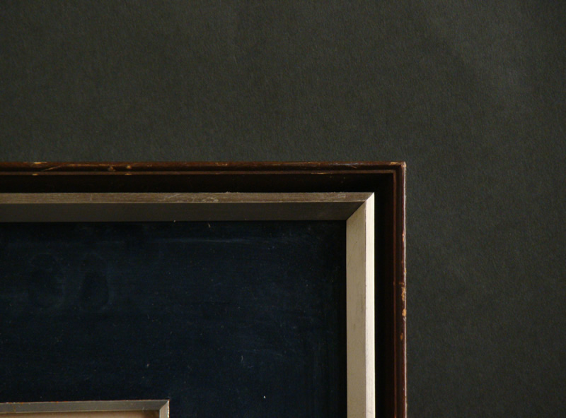 画面全体にうすいヤケわずかにシミ 額装に擦れや削げ、ひっかき疵など傷みあり