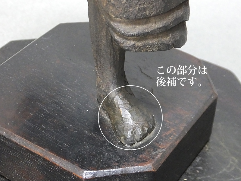 台座に密着している左足の先端部分は補修の造形です。その他割れなどは見られるものの、補修などはなく この手のものとしては比較的良好な状態と云えます。