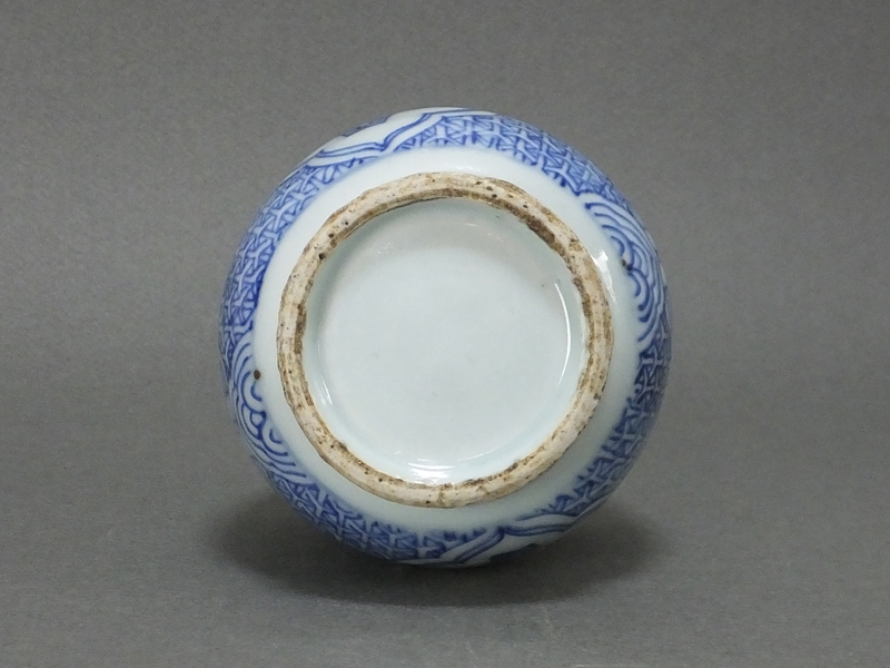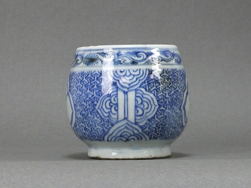 前置きが長くなりましたがこの古染付、意匠としては祥瑞としてもいいようにも思いますが、約束の胡麻土ではありませんので、その一群とは違います。しかしこれほどこのジャンルがお好きな方に好ましい器形や発色、風情はないのではないでしょうか。