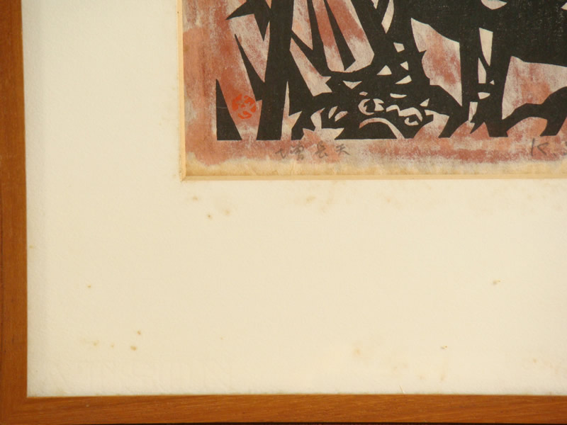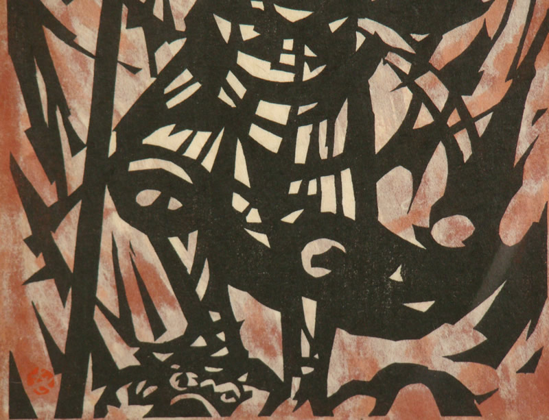 元来蒲柳の質で、一時期は木版画制作もままならない時もあったようですが、板絵を拓摺する事を考案して作品を作ったということです。これらは晩年の作品と思いますが、華奢なものが多かった若いときの作品に比較して、無駄のない余計なものをそぎ落としていった老境の自由闊達な空気が感じられます。