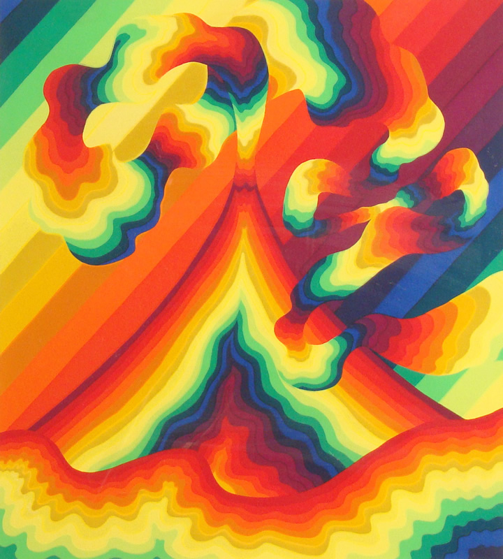 生命の根源の力を象徴するものでしょうか、火山が噴火していますね。力強く明快な色は力を与えてくれます。