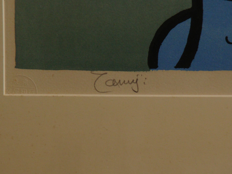 左下にエンボス 女屋印行とあるのはおそらく摺師、女屋勘左衛門氏の工房の印と思われます。